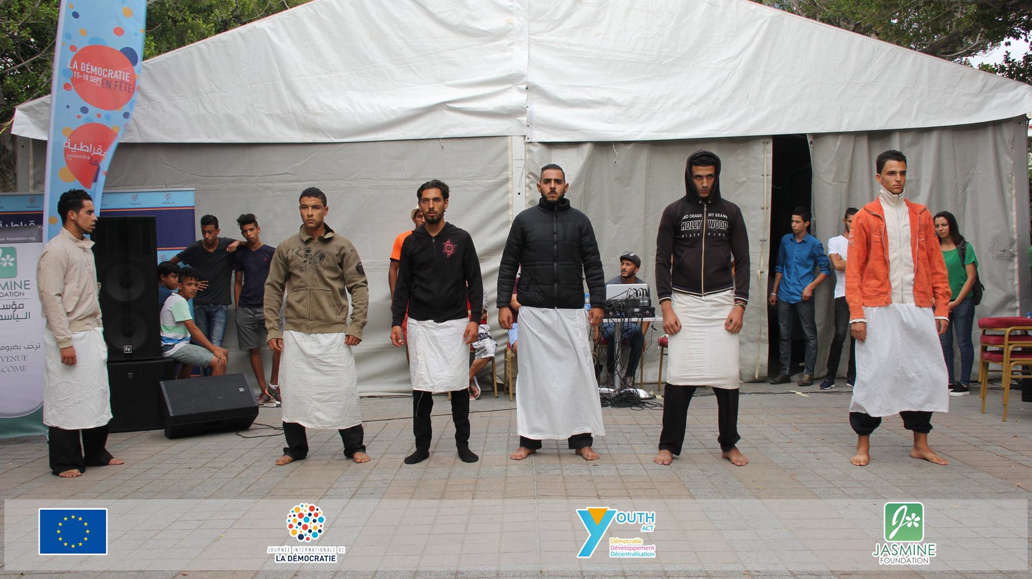 خلال اليوم الأول من التظاهرة، وبهدف تقريب النشطاء من المواطنين عبر فن الشارع، قام مشاركون من مشروع شباب فاعل الذي أطلقته مؤسسة الياسمين، بتنشيط عروض وأداءات فنية افتتحها “يانكو أم سي” ببعض أغاني الراب، واختتمها كل من محمد وغازي، ثم أدت مها عجرودي أغاني “سلام”، في حين قدم شباب آخرون عروض رقص البريك دانس كما قدمت مجموعة مسرح المحمدية عرضا مسرحيا تحت عنوان “الخوارج”.
