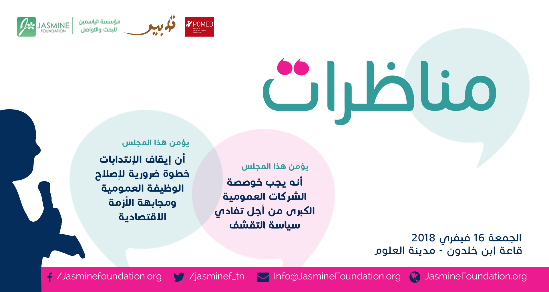ينظم القسم البحثي لمؤسّسة الياسمين للبحث والتواصل في إطار مشروع تدبير مناظرتين مفتوحتين للعموم،
