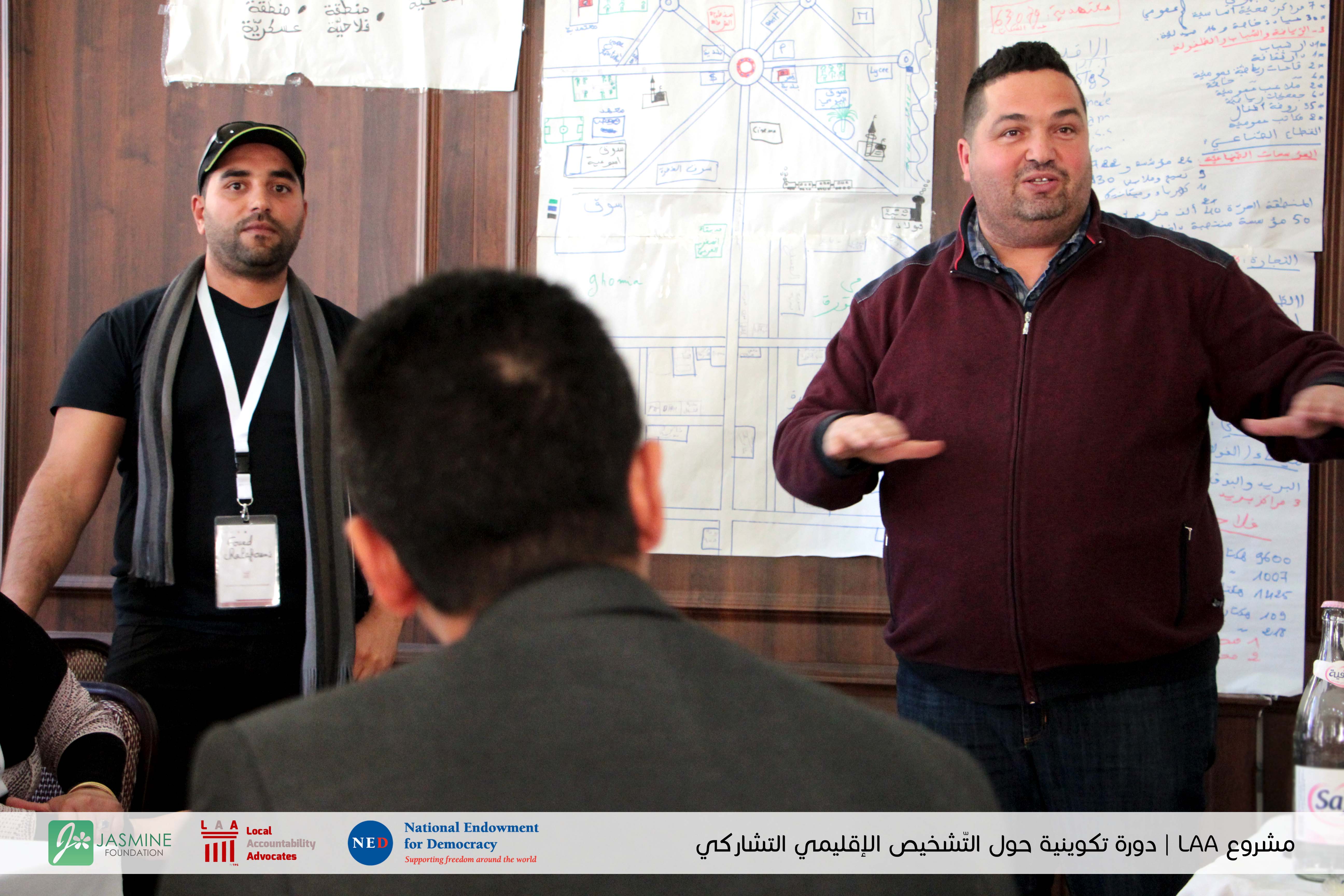 نظمت مؤسسة الياسمين للبحث والتواصل أيام الاثنين والثلاثاء 26 و27 مارس 2018 والجمعة 30 مارس إلى غاية الأحد غرة أفريل ورشتين تدريبيتين حول التشخيص الإقليمي التشاركي لفائدة مجموعة من الشباب من مناطق تونس الكبرى (طبربة وفوشانة والمرناقية) وبنزرت (العالية وجرزونة ومنزل بورقيبة) ونشطاء المجتمع المدني والمسؤولين المحليين وممثلين عن مؤسّسات خاصّة وذلك في إطار مشروع Local Accountability Advocates الذي تنفذه مؤسسة الياسمين للبحث والتواصل بدعم من الصندوق الوطني للديمقراطية (NED).
