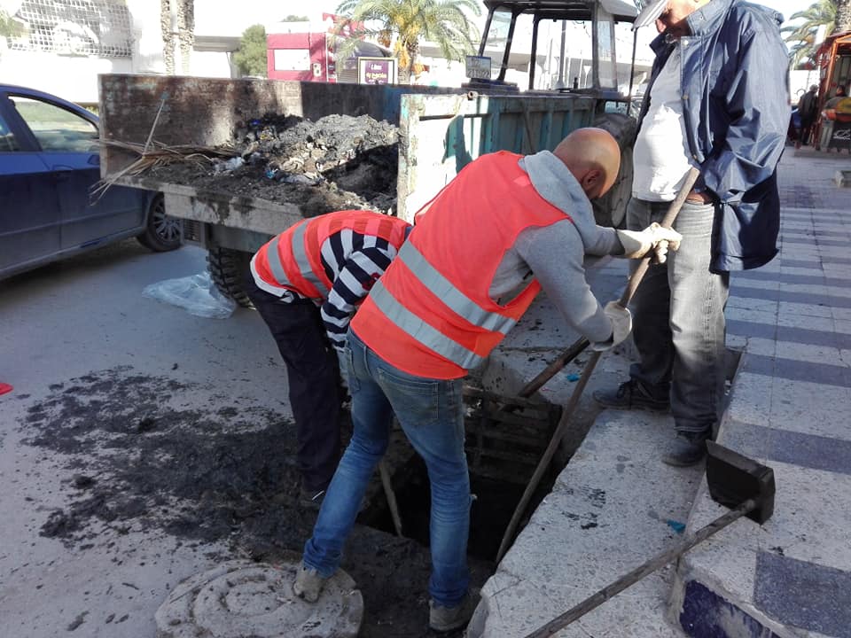 تواصل البلدية الأشغال للإزالة الأوحال والأتربة العالقة جراء الفيضانات.