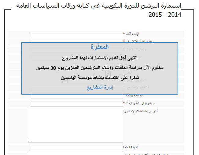 اتممت تسجيل جميع بياناتي في الدورة الخاصة بتكوين السياسات العامة ولا يتم الانتهاء من التسجيل في الاستماره وتنتهي برسالة لاغية .